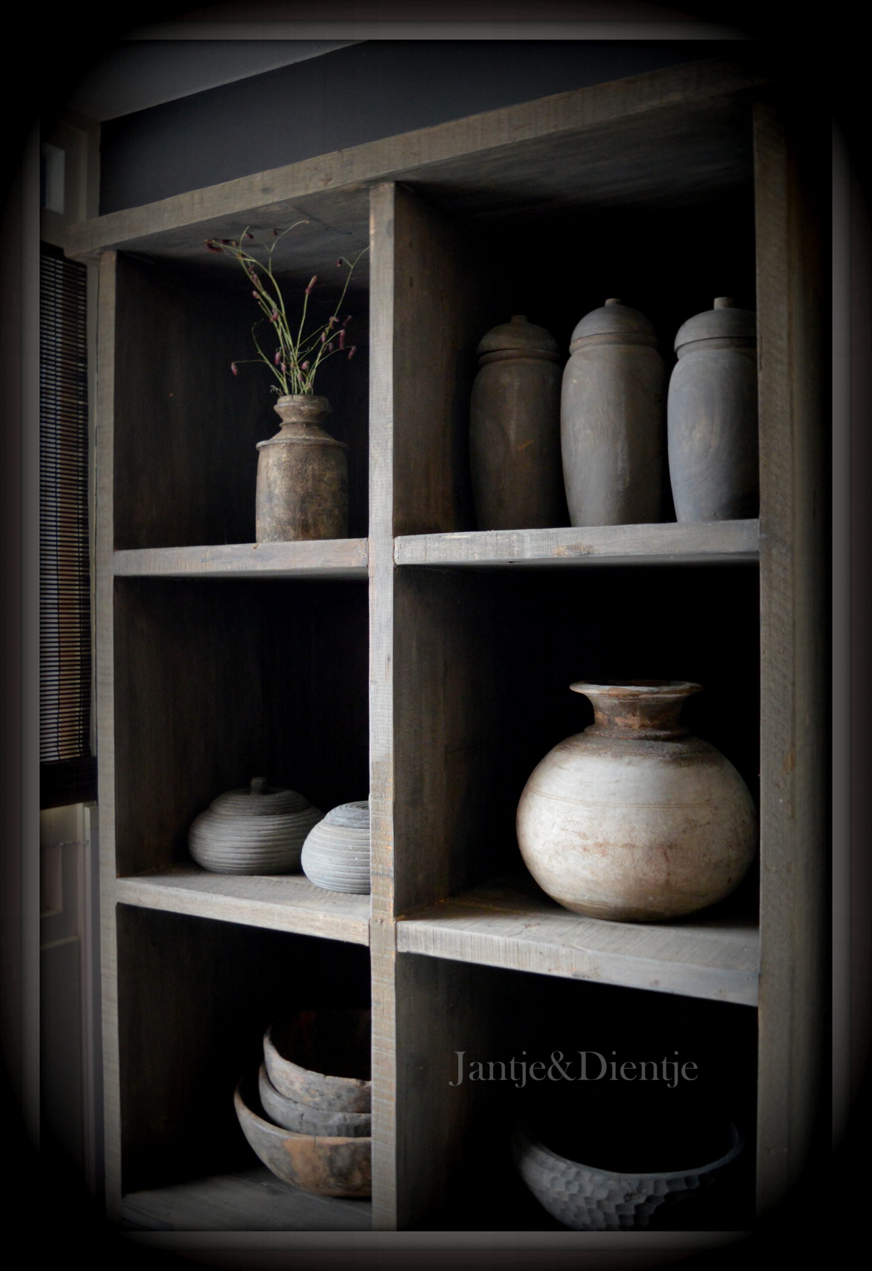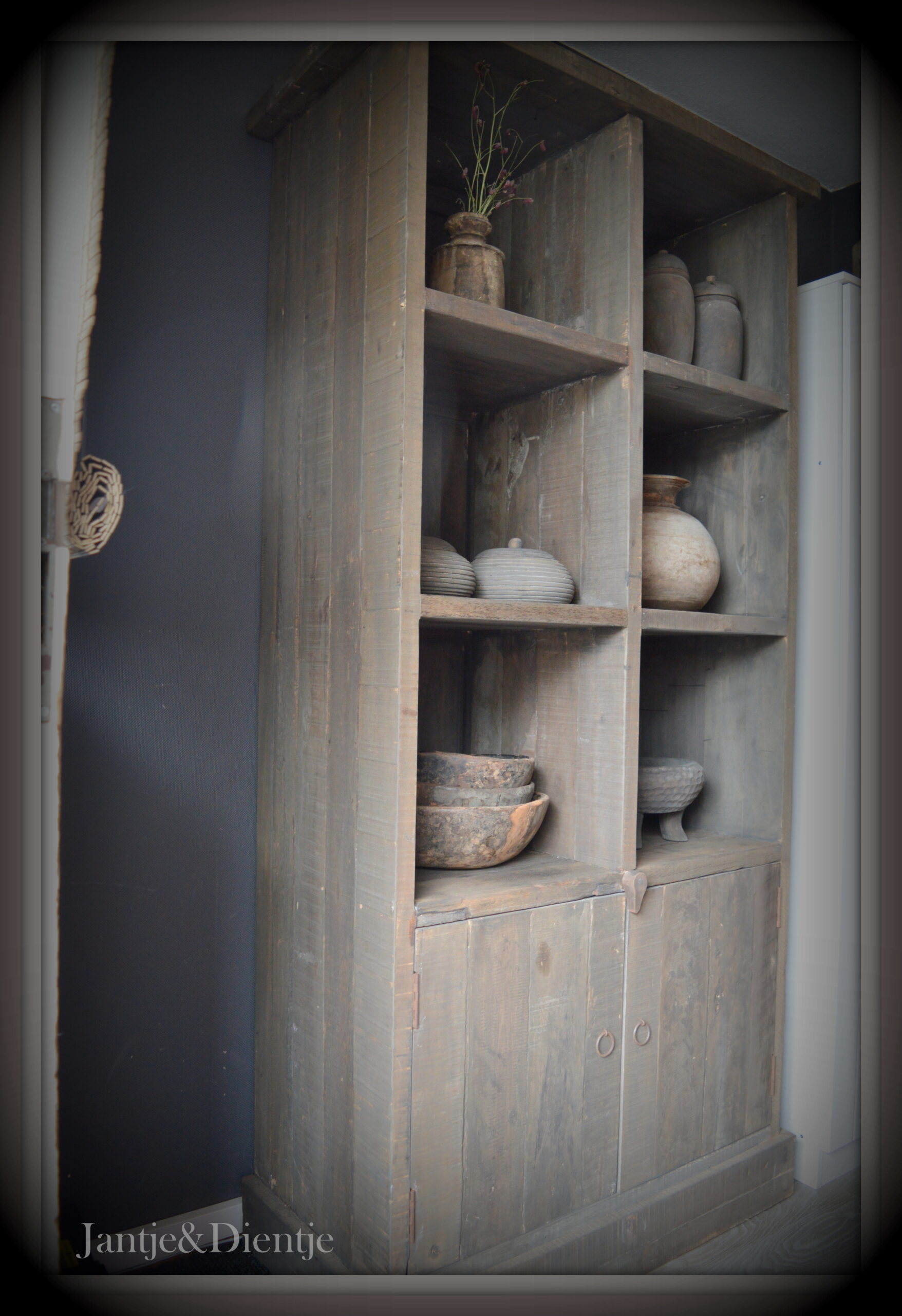 Prachtige, sobere en sfeervolle Driftwood vakkenkast.