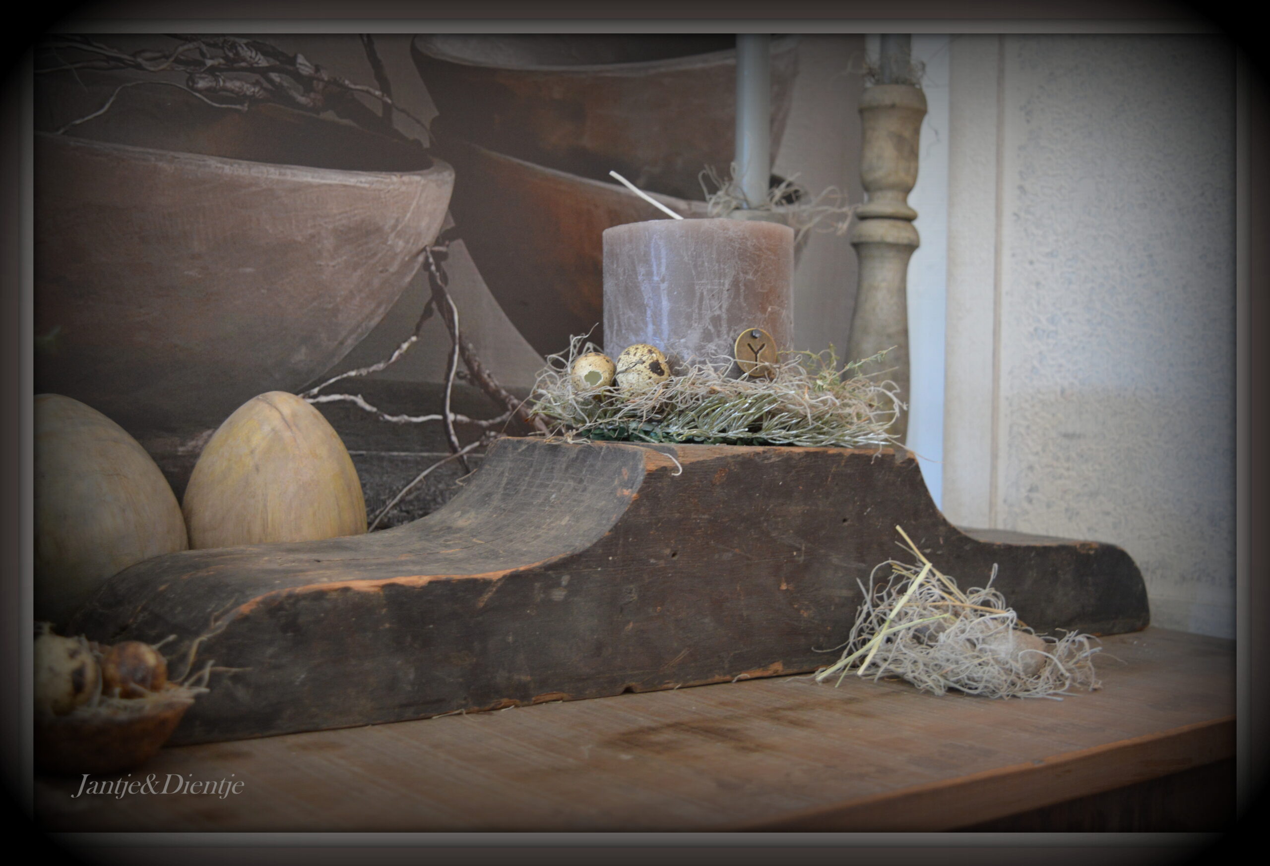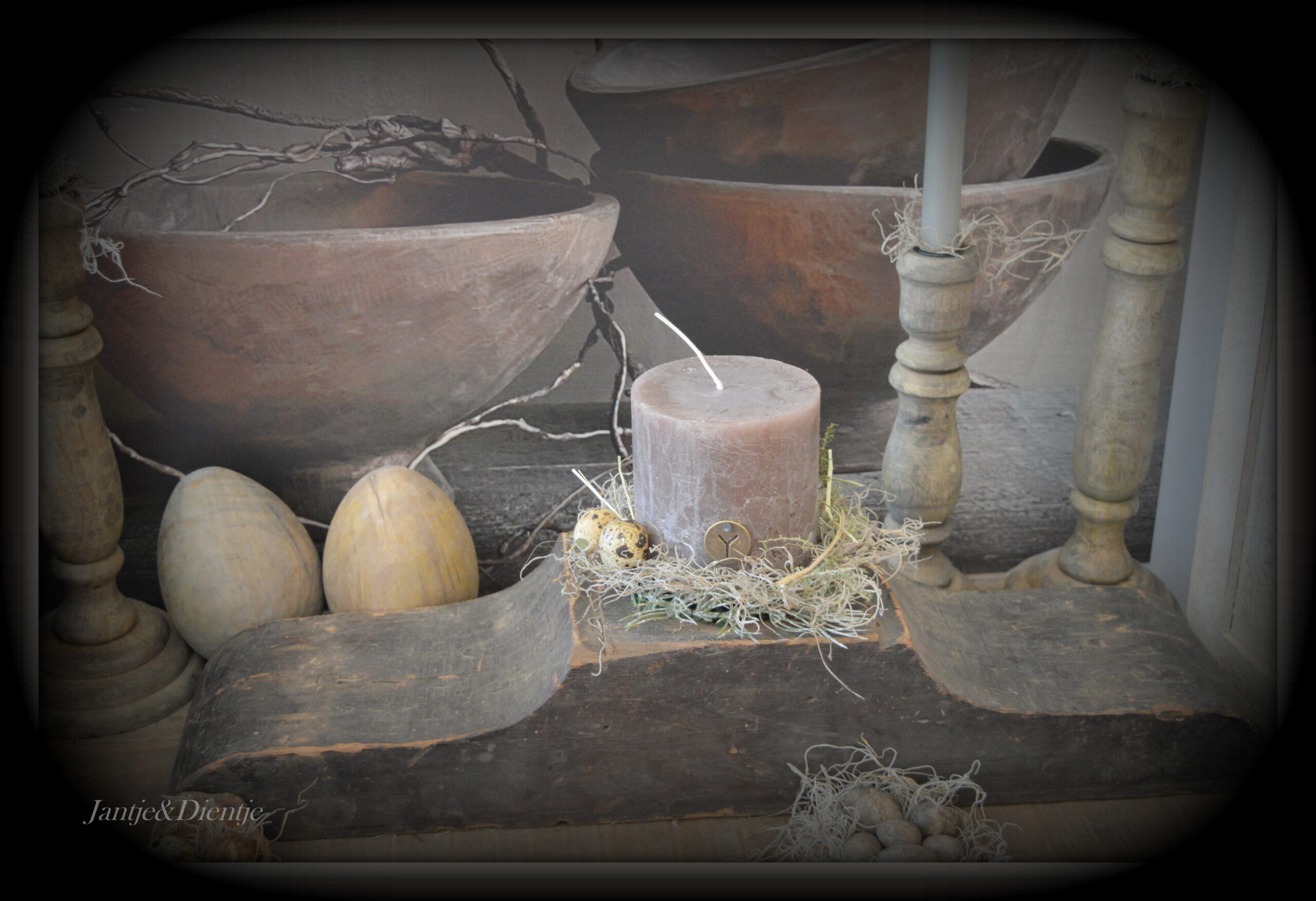 kandelaar van oude houten poer