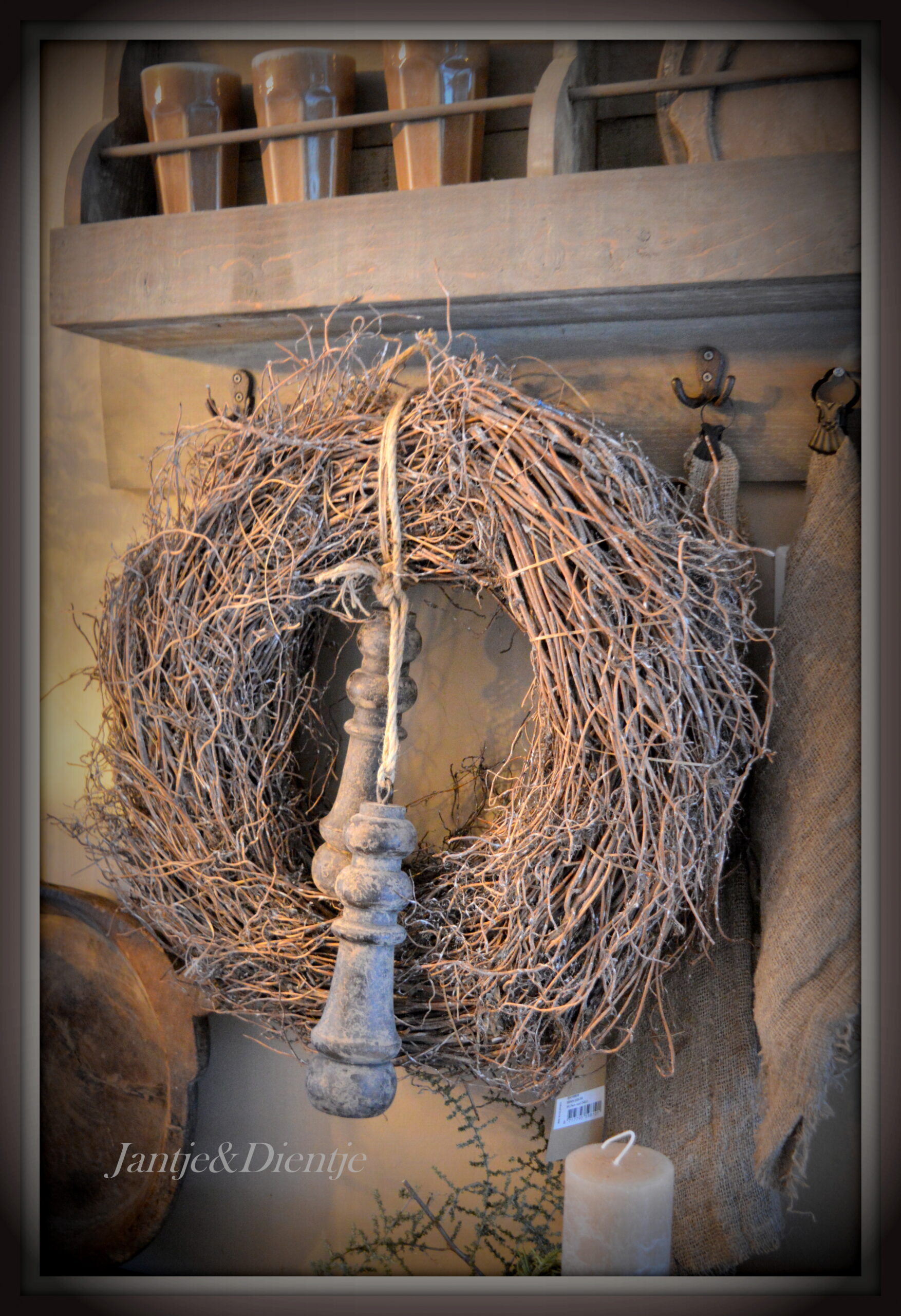 Krans van wilgentakken. Mooi te decoreren met lichtjes, klossen of lint.