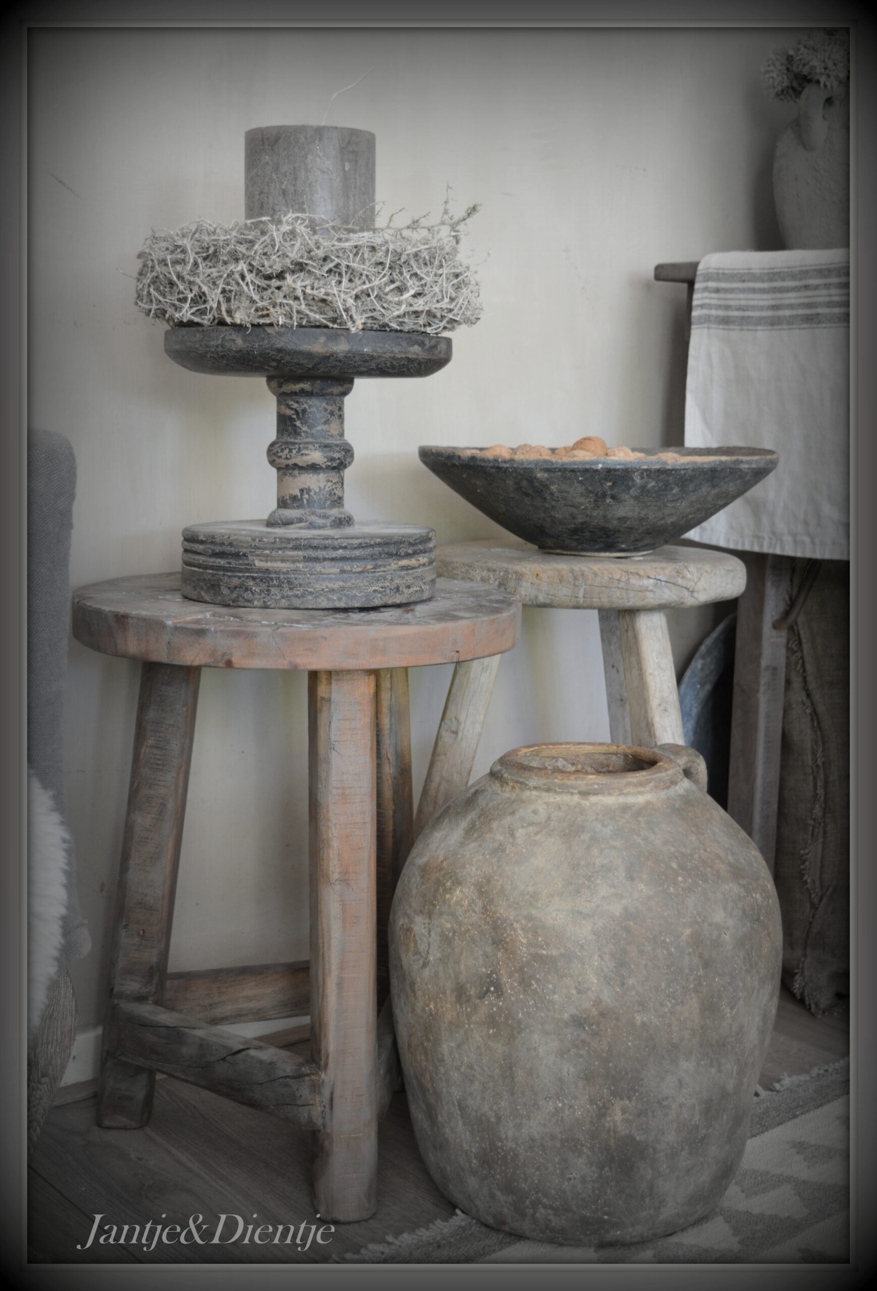 Authentiek houten krukje.