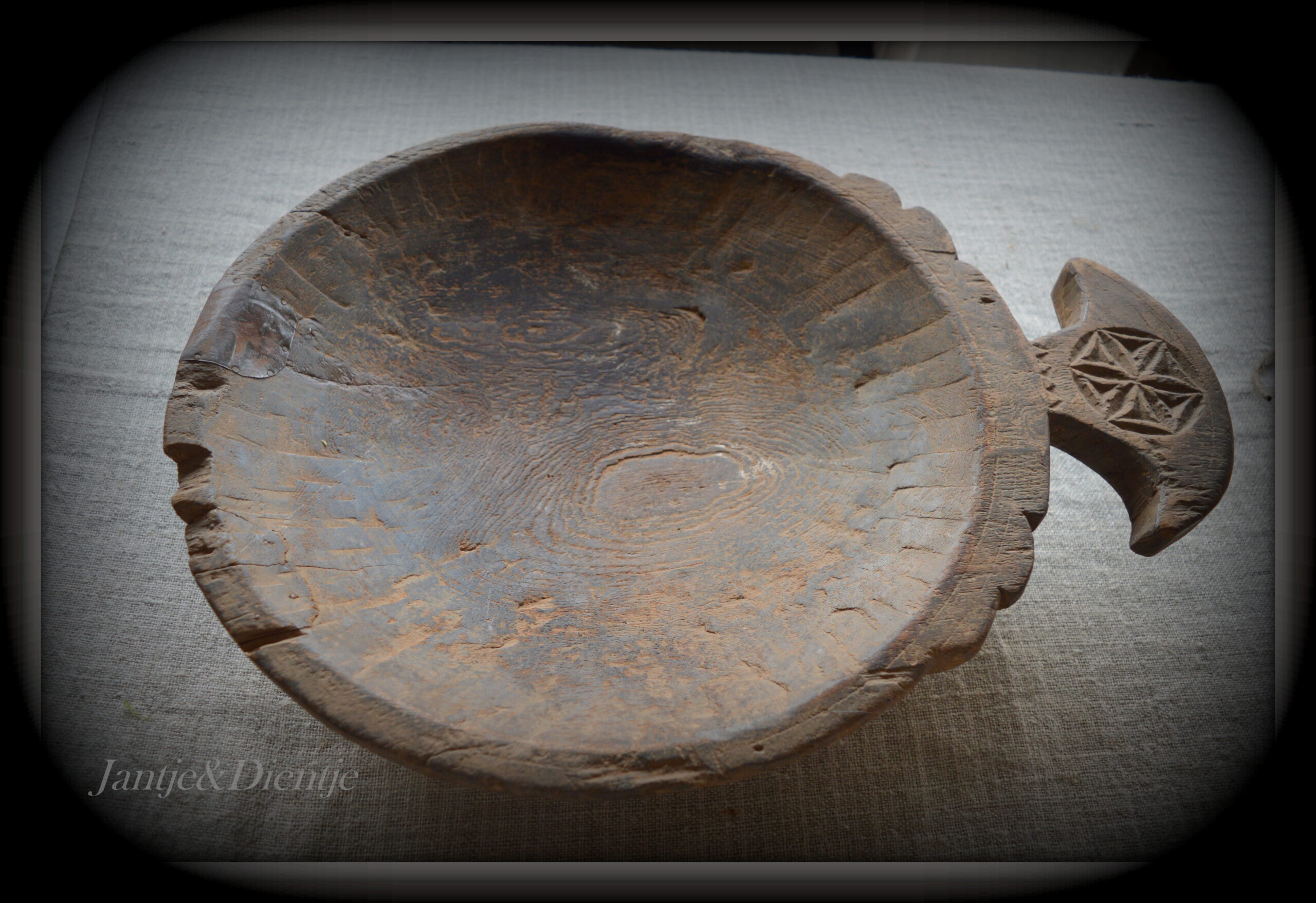 Mooie oude houten chapati schaal. Op veel manieren te decoreren.