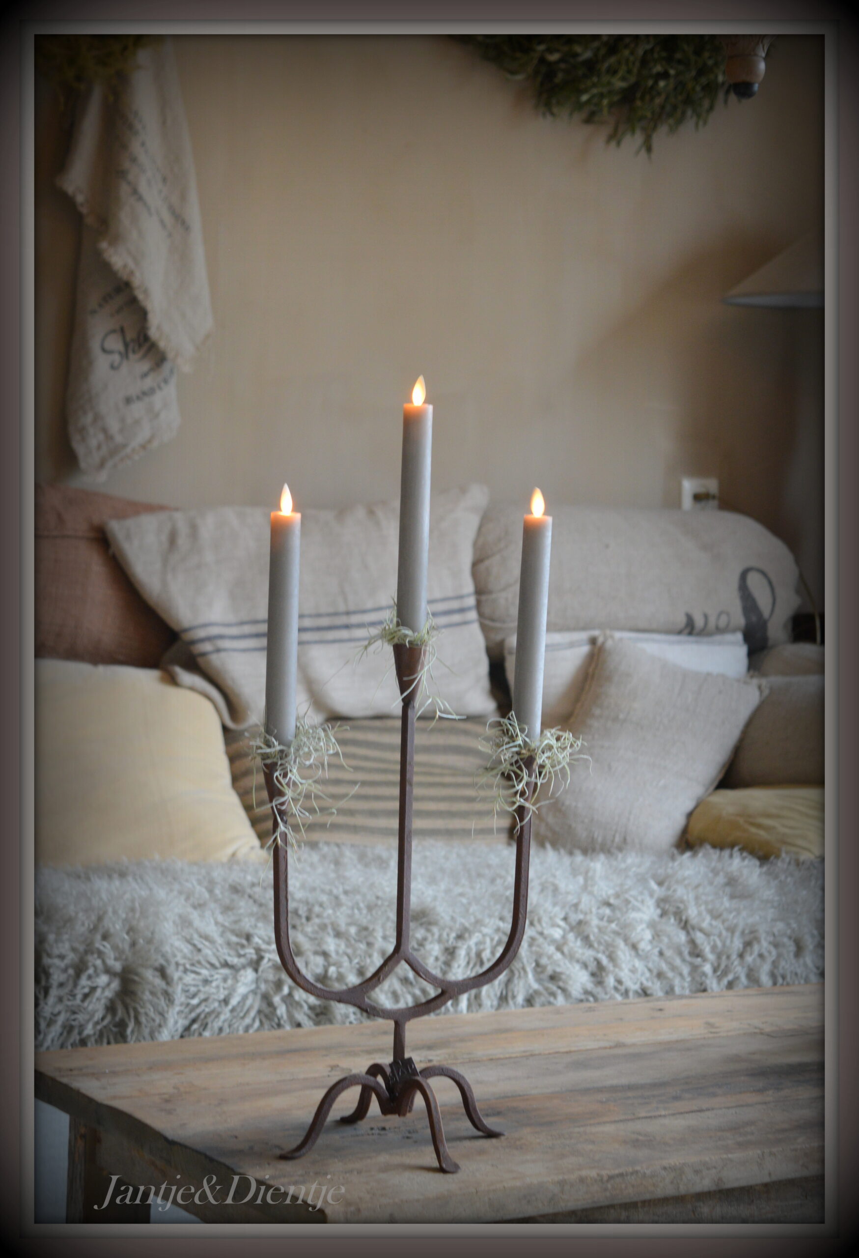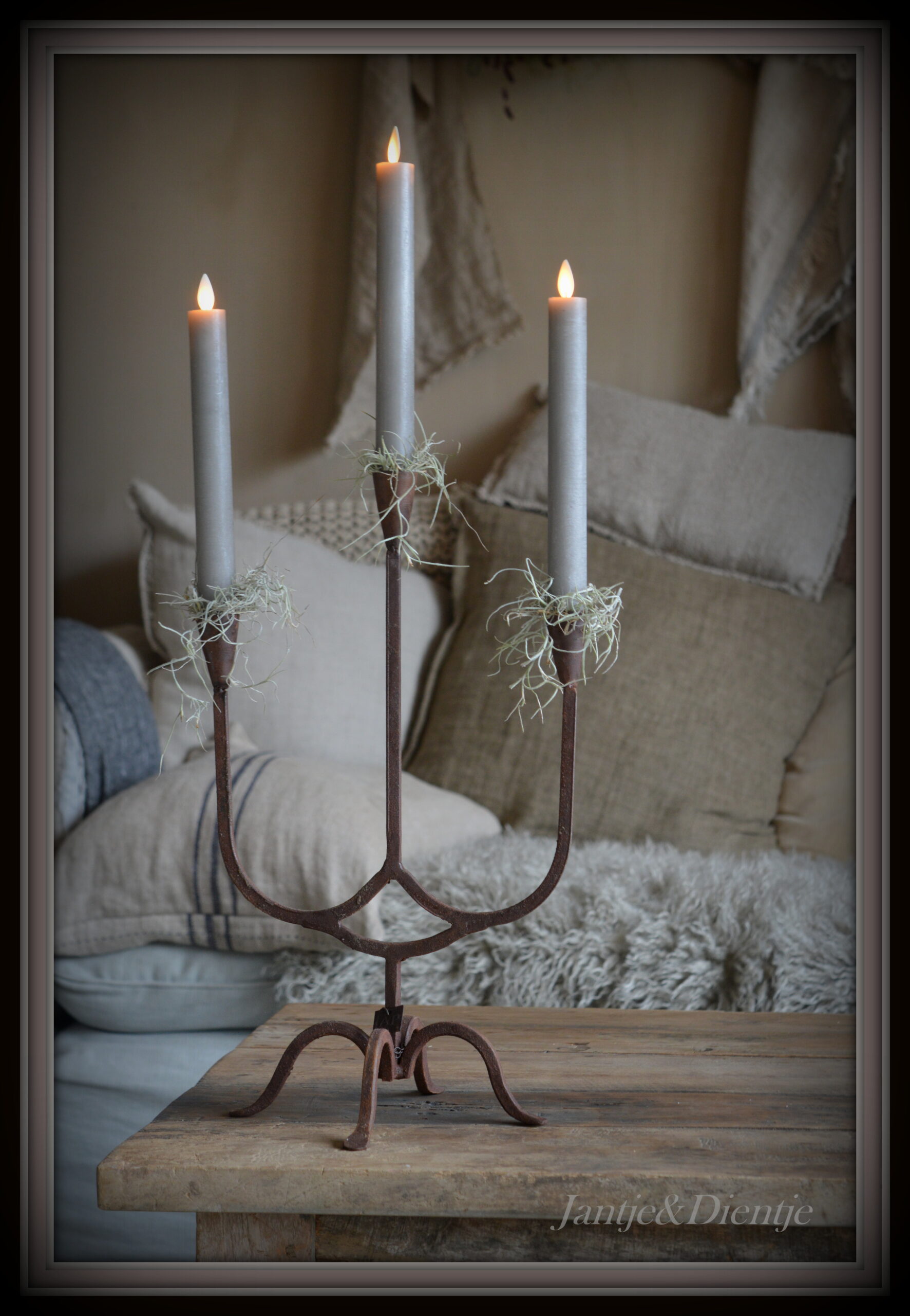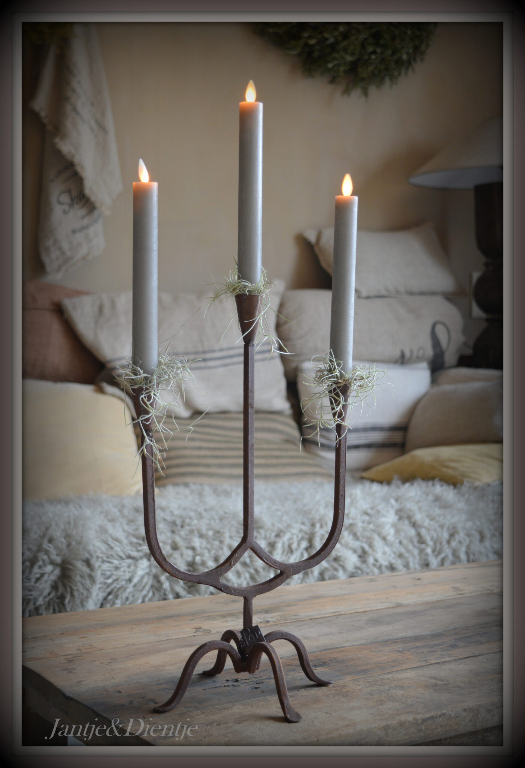 Zeer mooie roestige smeedijzeren kandelaar van Aura Peeperkorn.